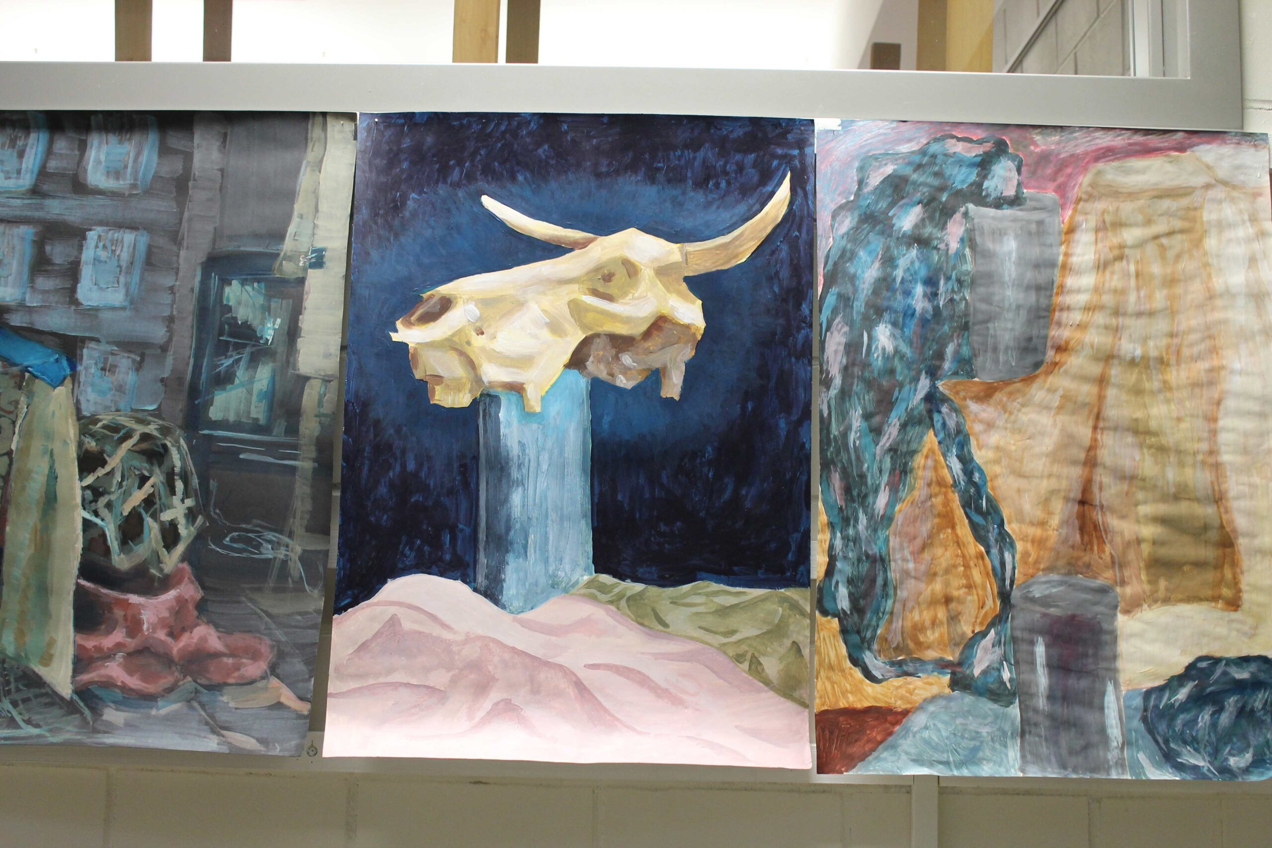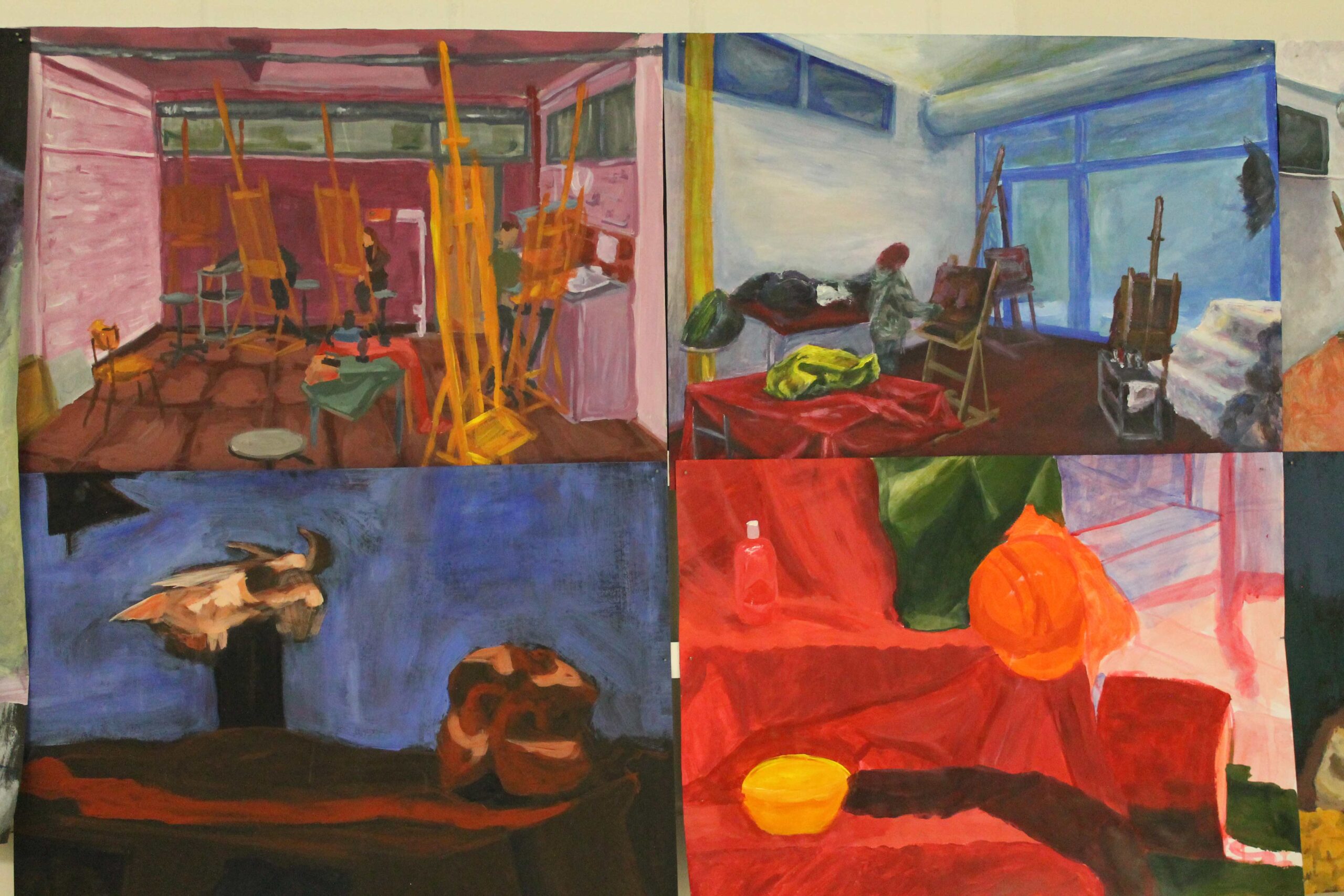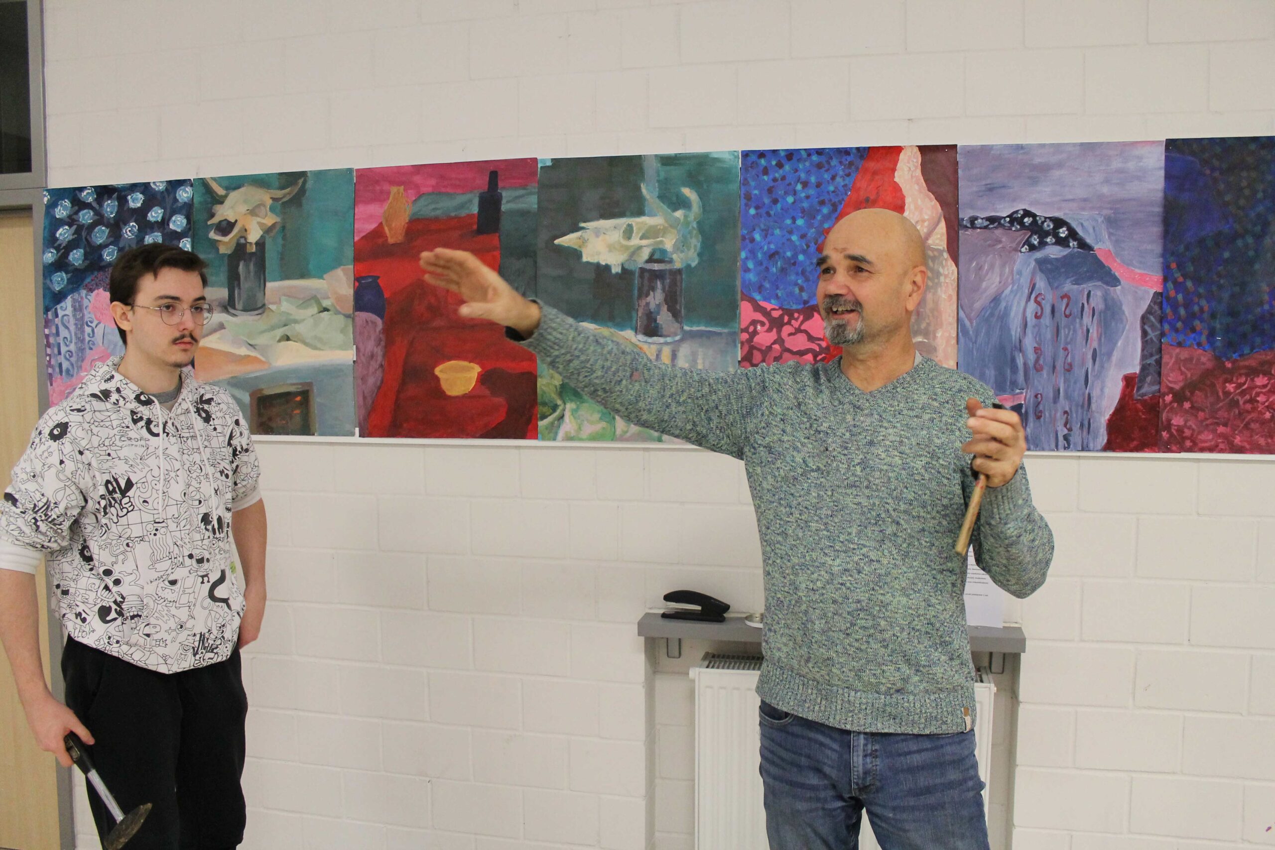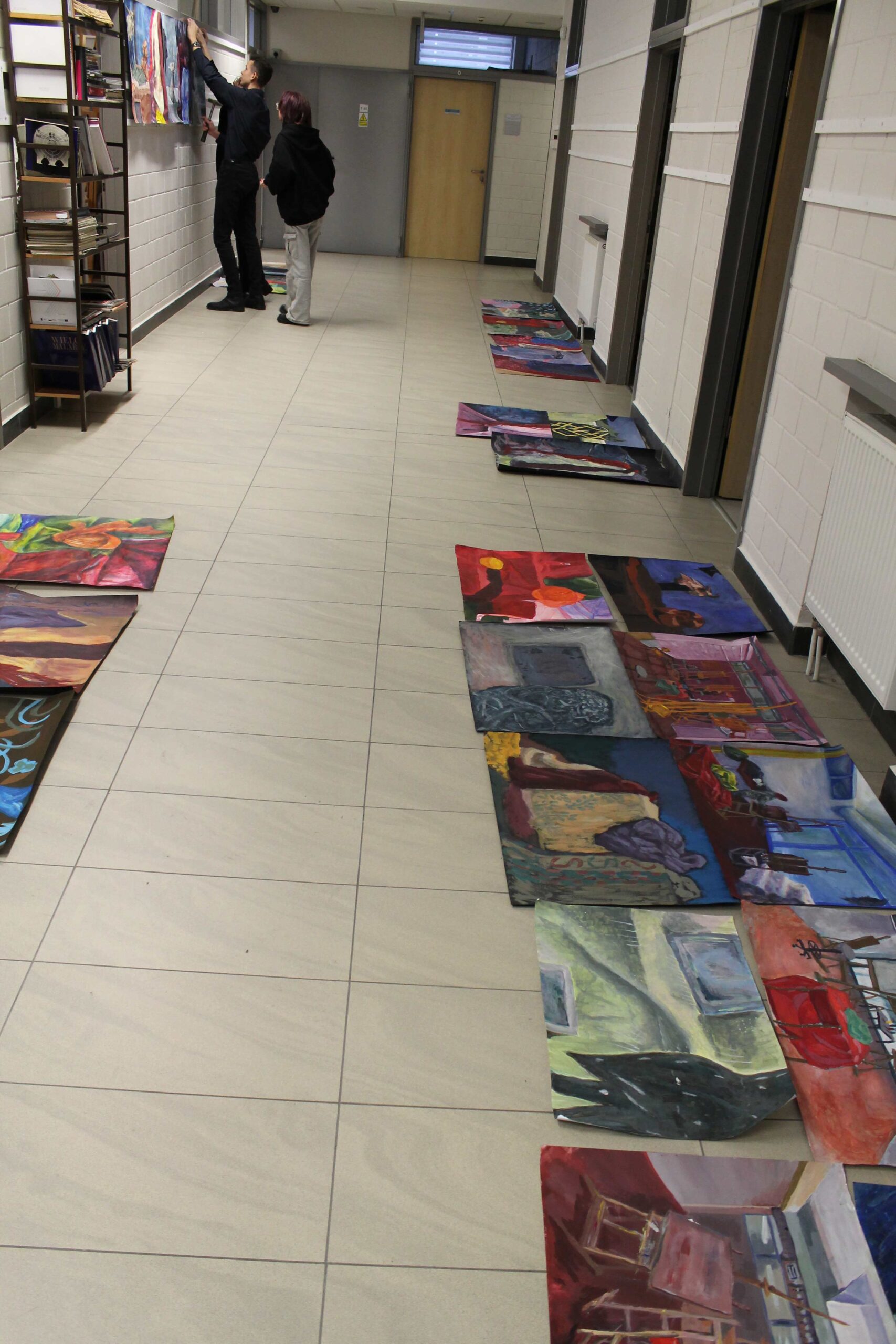 Wystawa w Galerii Korytarz na Wydziale Sztuki UwS prezentuje prace wykonane przez studentów sztuk plastycznych pierwszego roku podczas zajęć z podstaw malarstwa, prowadzonych przez Mikołaja Bielugę – profesora uczelni. Wybrane obrazy zostały namalowane za pomocą farb akrylowych na podobraziach o wymiarach przeważnie 50 x 70 cm. Przedstawiają podstawowe zagadnienia teorii barw, gam kolorystycznych, kontrastów, jak i perspektywy malarskiej. Wiodącymi tematami ćwiczeń są zastosowane barwy w celu uzyskania odcieni światła i cienia oraz umiejętność wydobywania kontrastów. Do wykonania prac posłużyły studentom aranżacje martwych natur i fragmenty wnętrza. Widać zróżnicowaną interpretację oraz indywidualność każdego ze studentów.