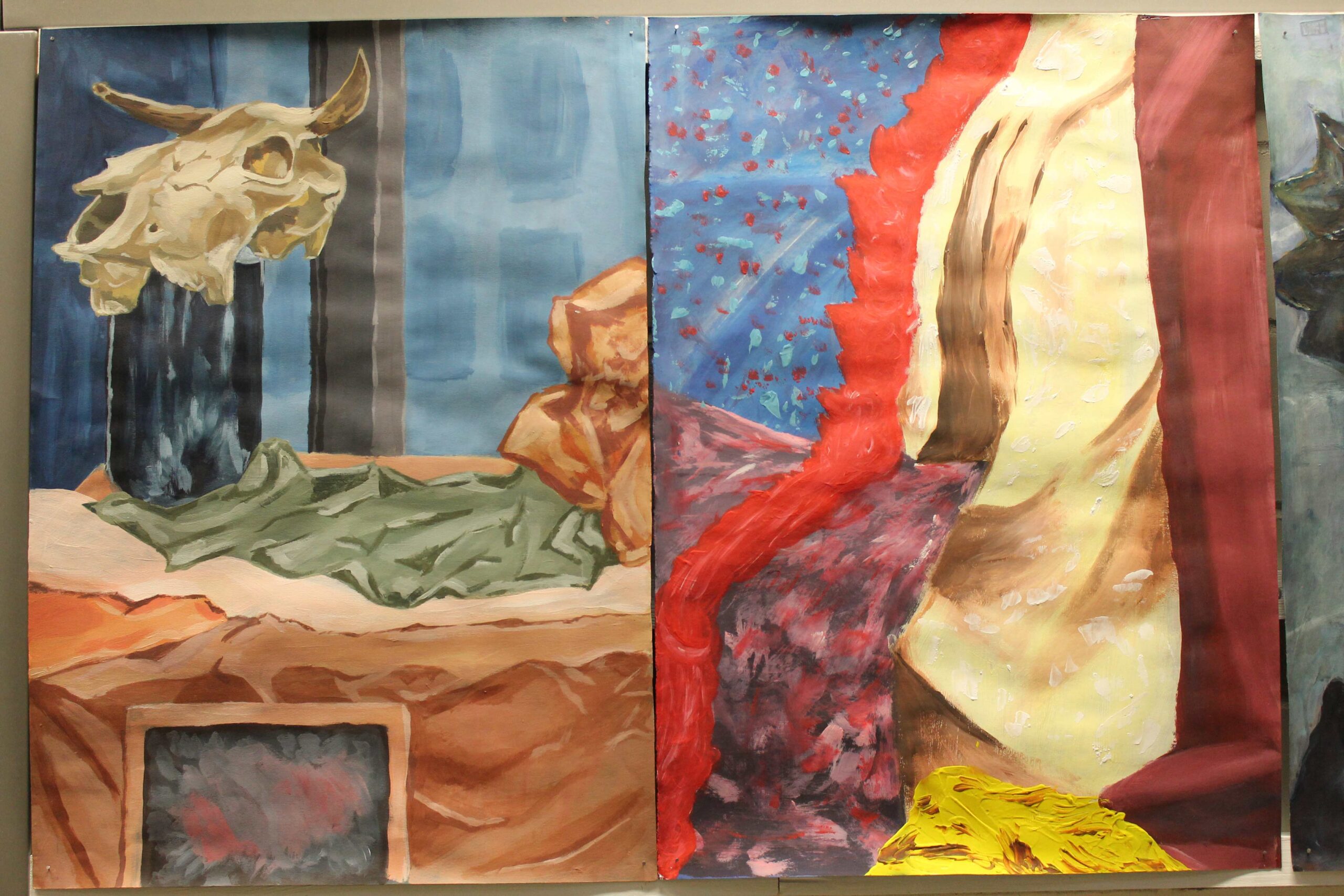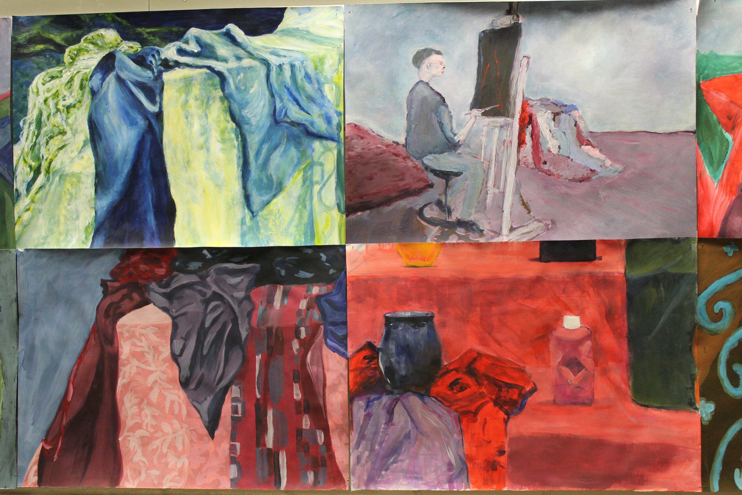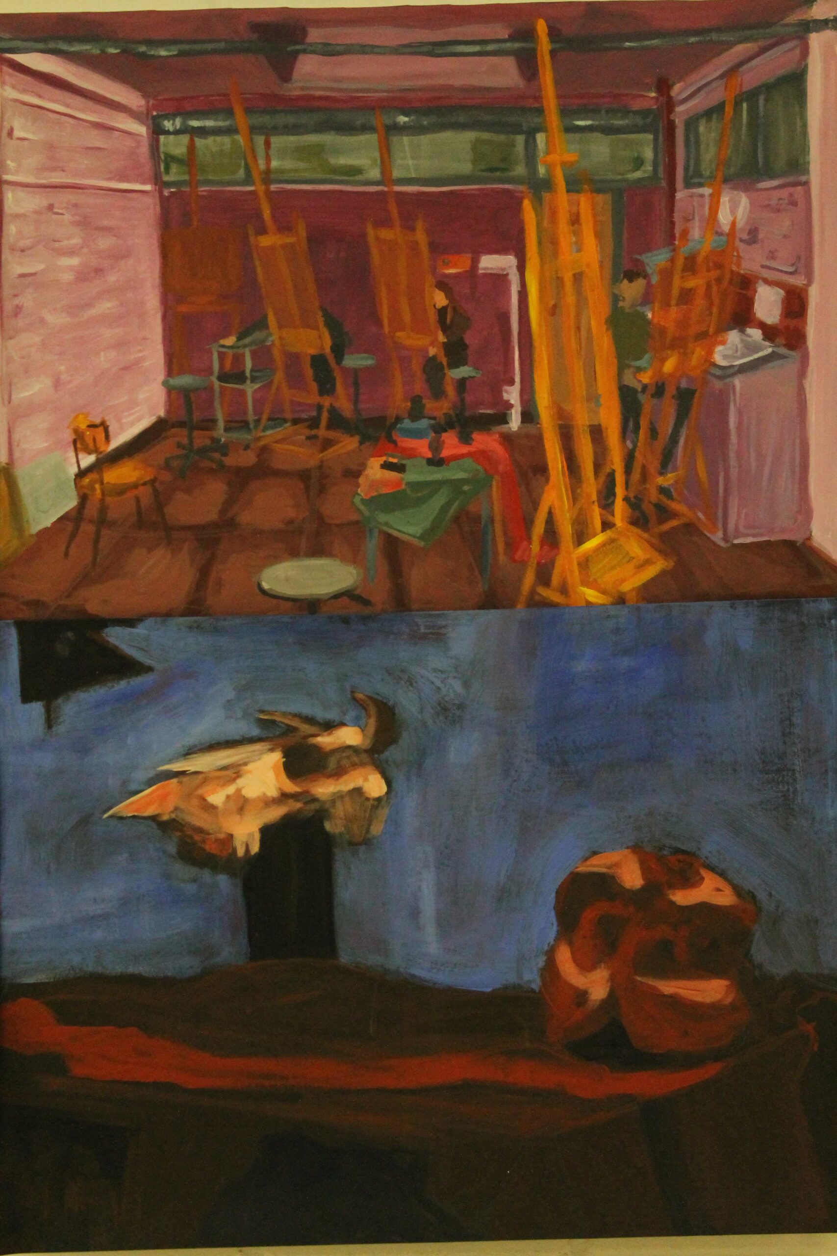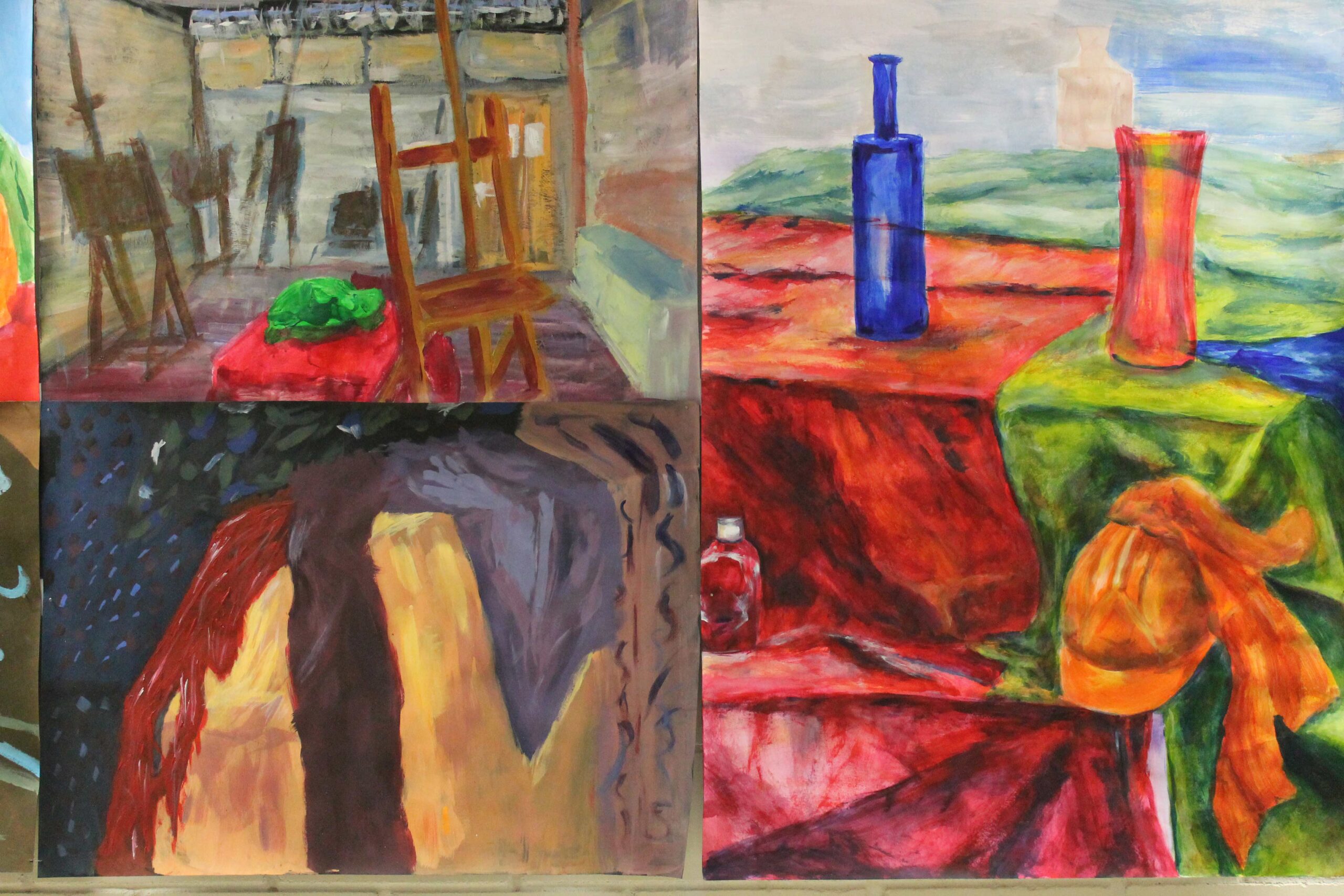 Wystawa w Galerii Korytarz na Wydziale Sztuki UwS prezentuje prace wykonane przez studentów sztuk plastycznych pierwszego roku podczas zajęć z podstaw malarstwa, prowadzonych przez Mikołaja Bielugę – profesora uczelni. Wybrane obrazy zostały namalowane za pomocą farb akrylowych na podobraziach o wymiarach przeważnie 50 x 70 cm. Przedstawiają podstawowe zagadnienia teorii barw, gam kolorystycznych, kontrastów, jak i perspektywy malarskiej. Wiodącymi tematami ćwiczeń są zastosowane barwy w celu uzyskania odcieni światła i cienia oraz umiejętność wydobywania kontrastów. Do wykonania prac posłużyły studentom aranżacje martwych natur i fragmenty wnętrza. Widać zróżnicowaną interpretację oraz indywidualność każdego ze studentów.